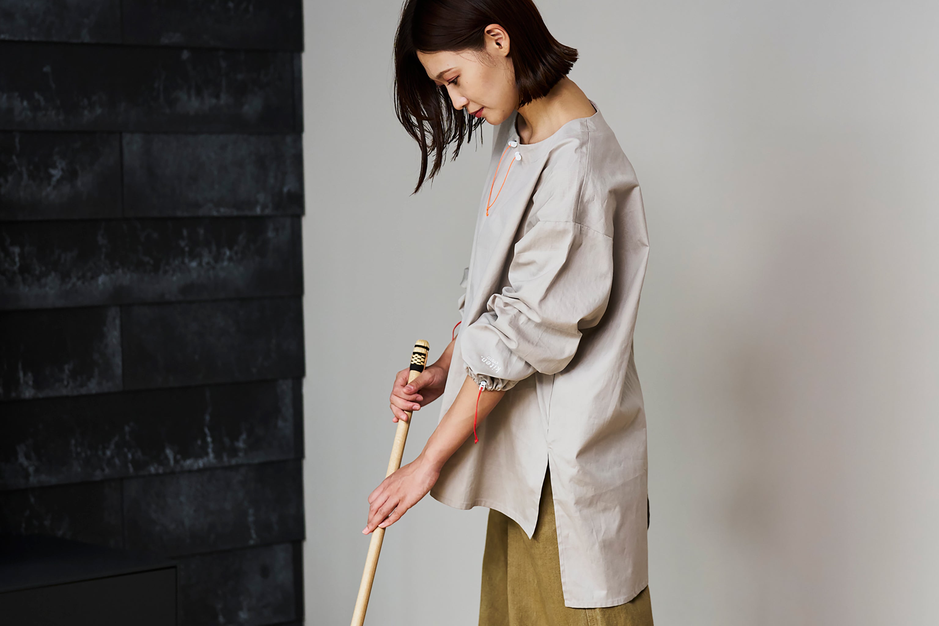 『MAKU.』は、単なる衣類ではなく「道具」としての視点からも設計されています。日々の暮らしや仕事のなかで、多様な作業に対応できるよう、形を変えられるデザインを採用。使い手の感覚や用途に応じて寄り添う、頼れる存在として活躍します。長く使えることを前提に、丁寧に仕立てた一着だからこそ、経年変化を楽しみながら、道具としての愛着も深まっていくはずです。
